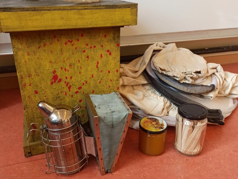Mit vielen Anschauungsmaterialien, Imkerwerkzeugen und einem Blick in ein virtuelles Bienenvolk wird das Thema lebendig und greifbar.